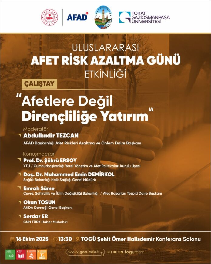 🌍 Uluslararası Afet Risk Azaltma Günü kapsamında, Tokat Gaziosmanpaşa Üniversitesi’nde düzenlenecek